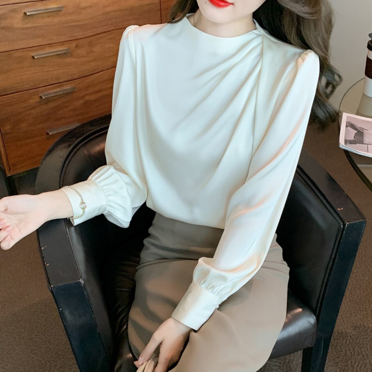 優雅なドレープデザインが魅力のブラウス。洗練されたシルエットは、カジュアルな日常使いから特別なシーンまで幅広く対応します。シンプルなパンツやスカートと合わせるだけで、スタイリッシュで洗練された印象を与えることができます。ワードローブの新しい必須アイテムとして、ぜひお試しください。