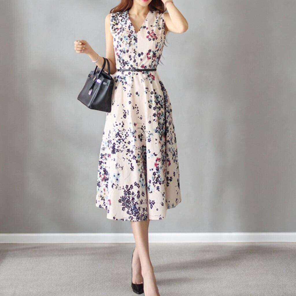 流れるようなシルエットが美しく、フラワープリントが華やかさを引き立てます。特別なイベントからカジュアルなデイリーユースまで、幅広いシーンで活躍する一着となっています。
