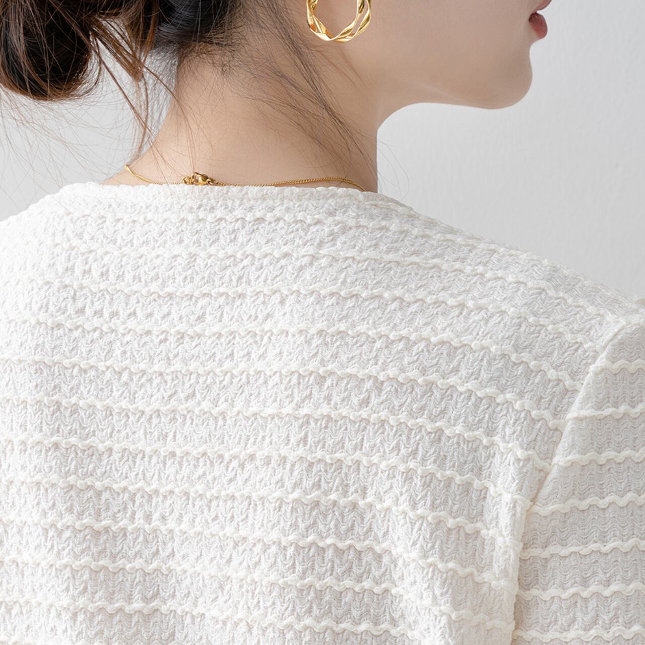 優雅さとかわいらしさを兼ね備えたブラウス。どんなコーディネートにもぴったりなアイテムです。フリルデザインが顔周りを華やかに演出し、女性らしい印象を与えます。デイリー使いから、特別なイベントまで幅広くご利用いただける嬉しいアイテムです。