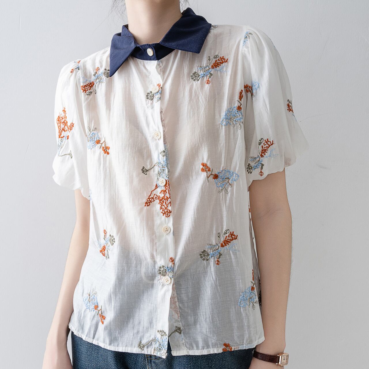 ふんわりとしたパフスリーブが、女性らしさを引き立て、軽やかな印象を与えます。カジュアルなデニムから、スカートまで幅広いボトムスと相性が良く、さまざまなシーンでお楽しみいただける一着です。