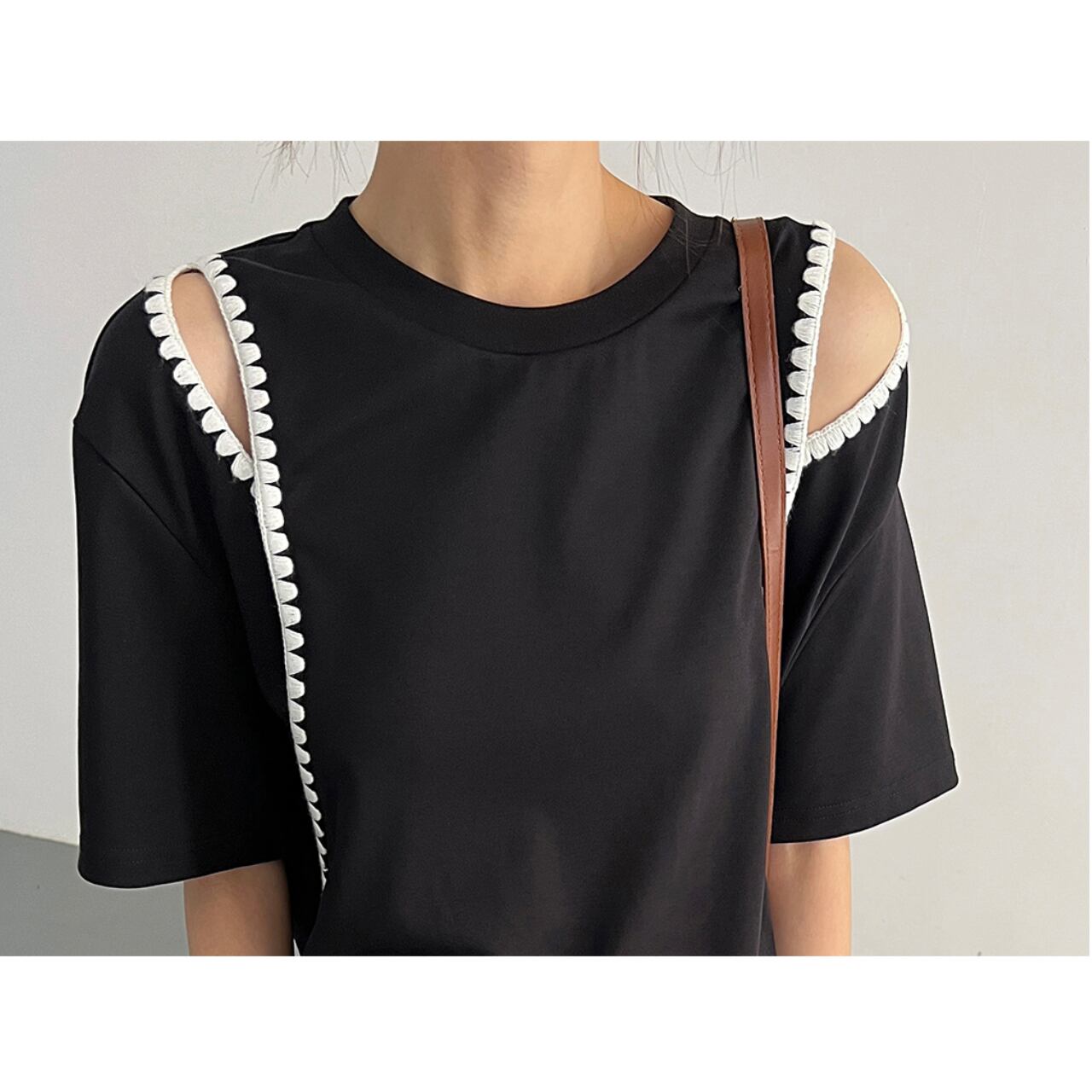 トップスは程よくルーズなシルエットに加え、肩のスリットが抜け感を演出。