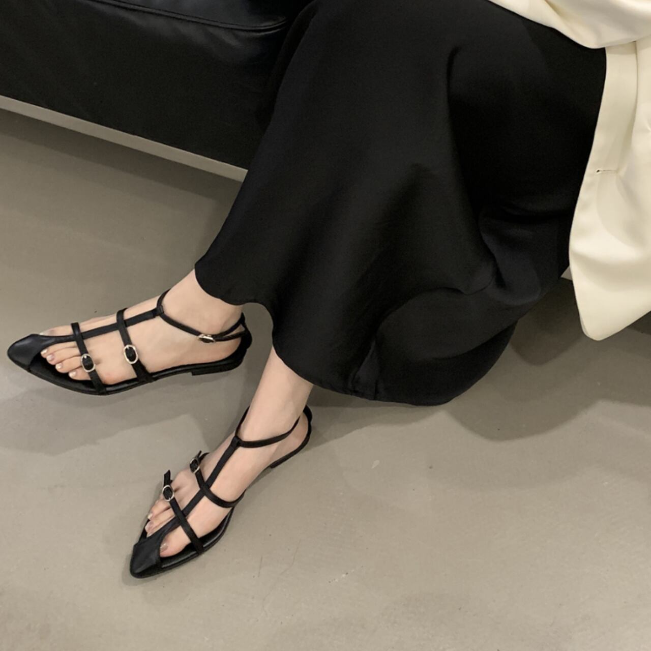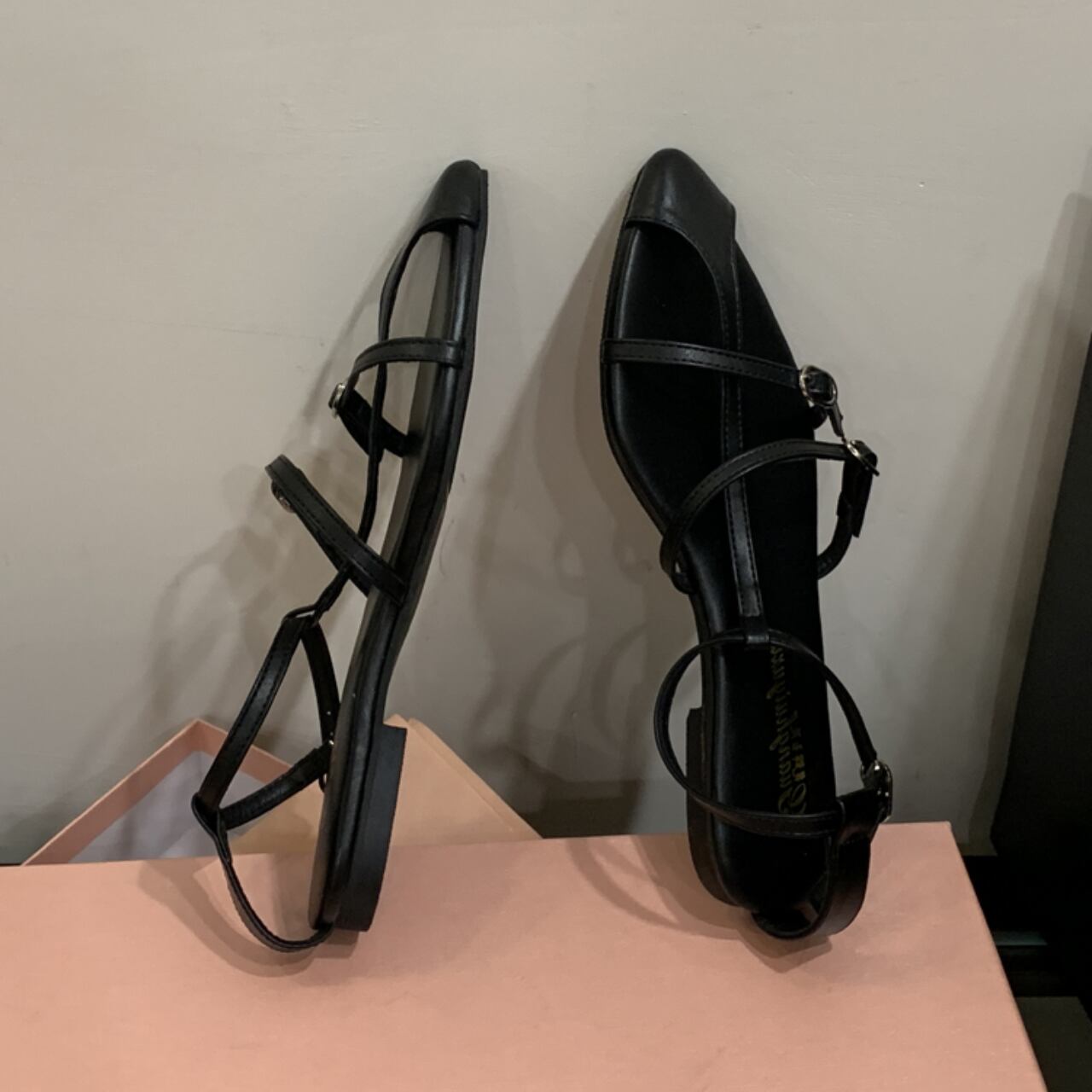 オープントゥデザインとクロスストラップで、足元を美しく見せる一足です。低めのヒールなので、長時間の着用でも疲れにくく、デイリー使いや旅行に最適。シンプルながらも、コーディネートのアクセントになるアイテムです。
