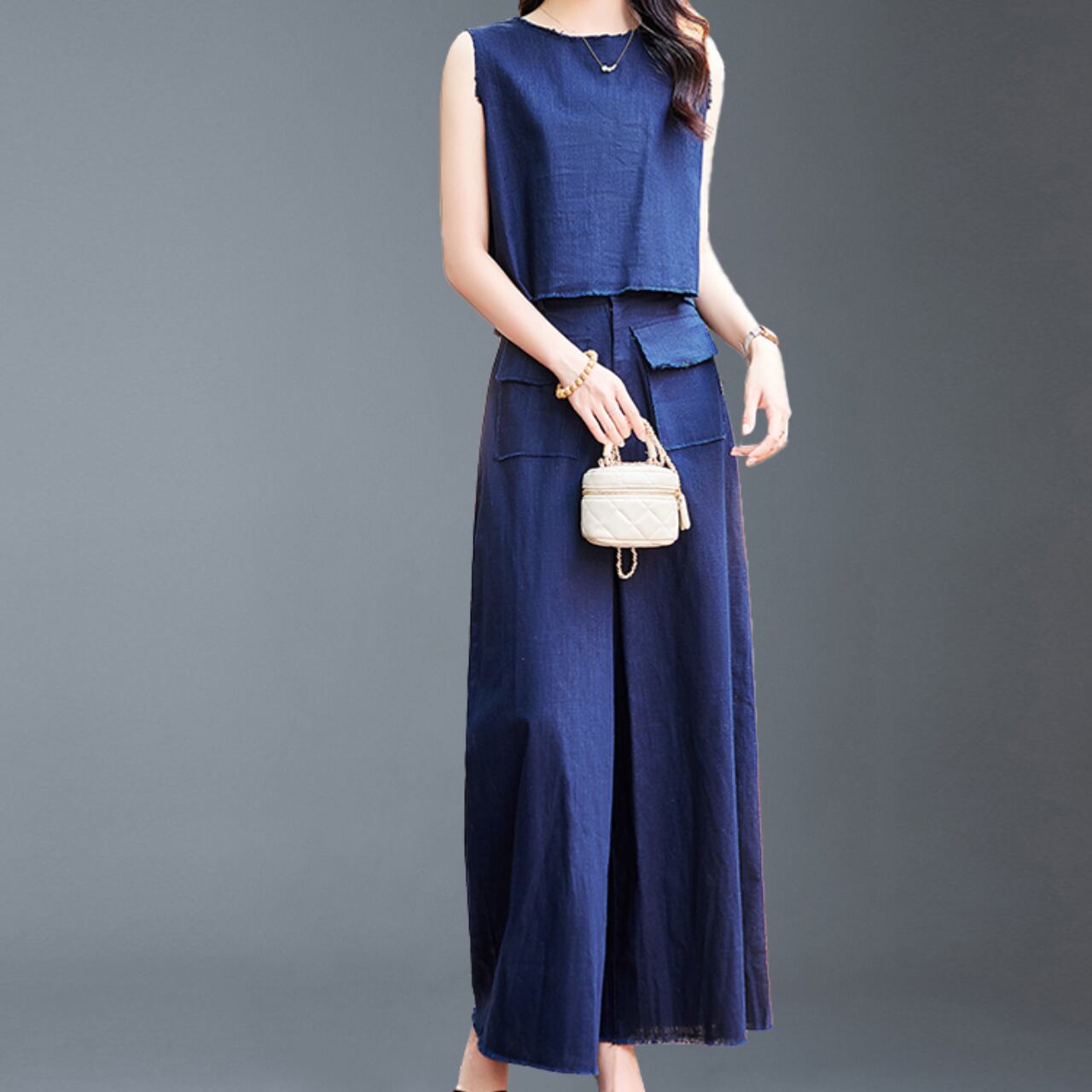 Set-up sleeveless wide leg pants LA250506