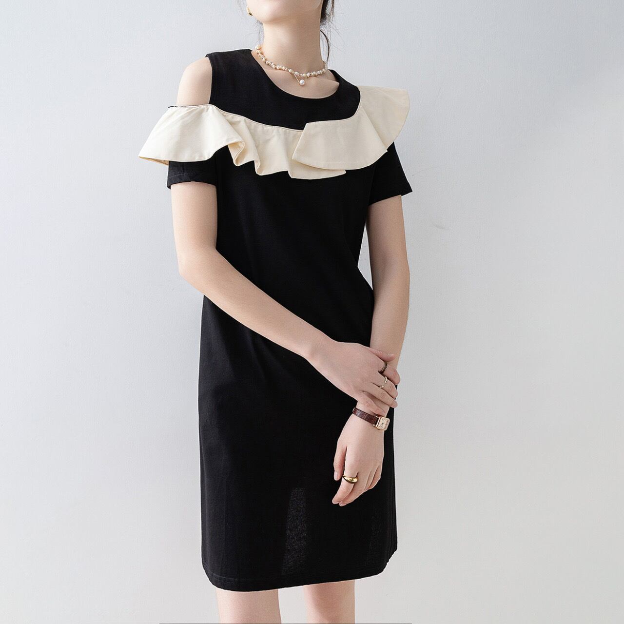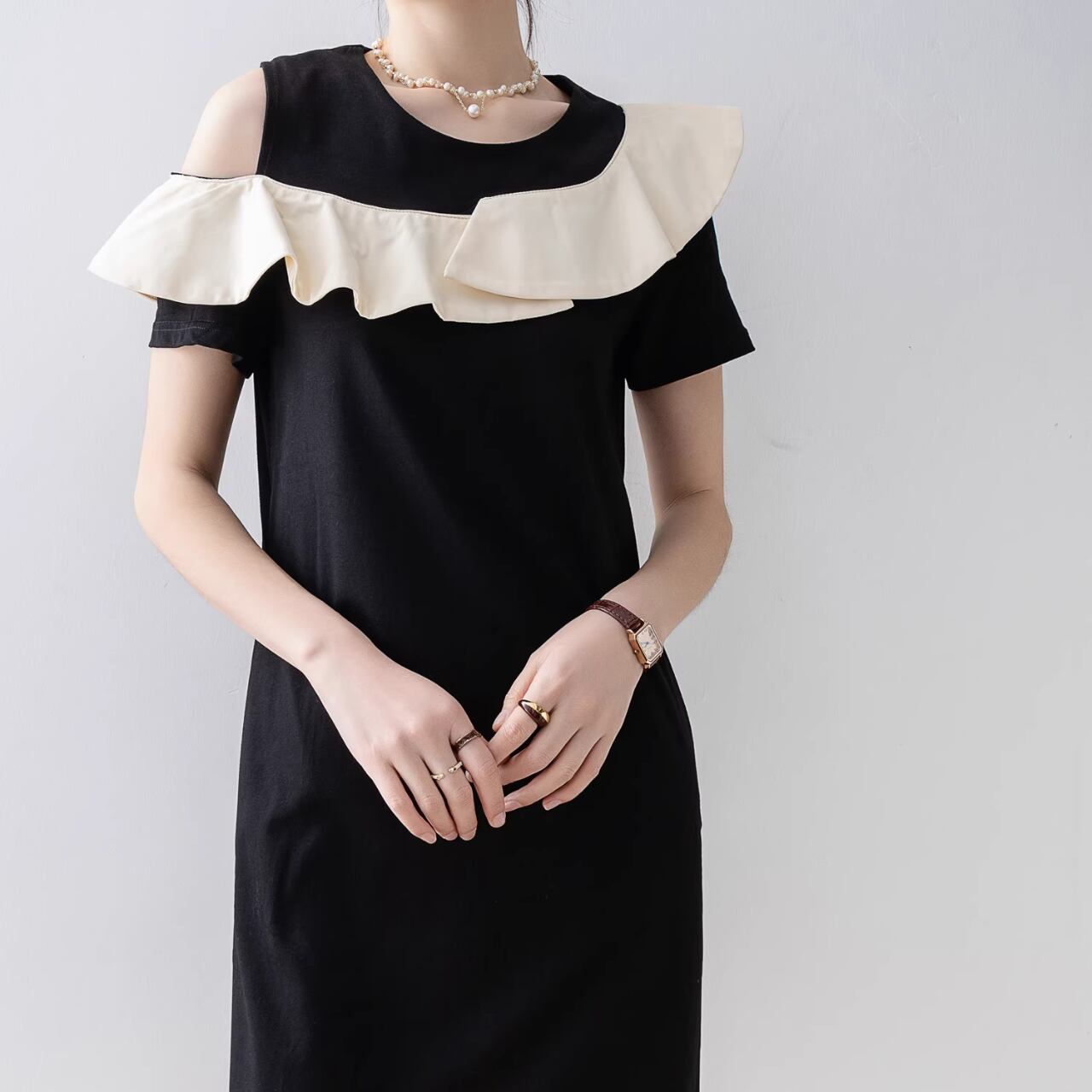 洗練されたカラーブロックデザインと愛らしいフリルが魅力のオフショルダーワンピースです。普段使いはもちろん、特別な日のコーディネートにもぴったりなアイテムです。豊かな色合いで、着用するだけで華やかな印象を与えます。