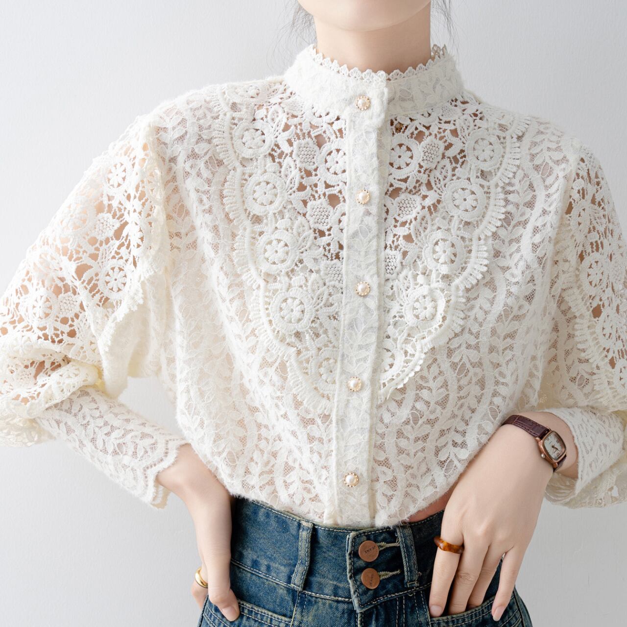 洗練されたデザインと上品なレースが魅力のブラウス。スリーブはトレンド感漂うシルエットを作り出し、女性らしさを引き立てます。