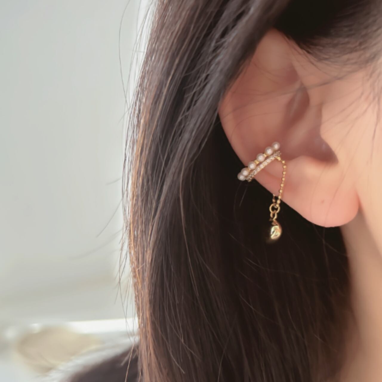 エレガントで遊び心あふれるパール付きハートチャーム イヤーカフです。ハート型のデザインに淡いパールがあしらわれており、日常使いはもちろん、特別なシーンでも際立つ存在感を放ちます。耳元にさりげない華やかさをプラスし、あなたのスタイルを一層引き立てます。