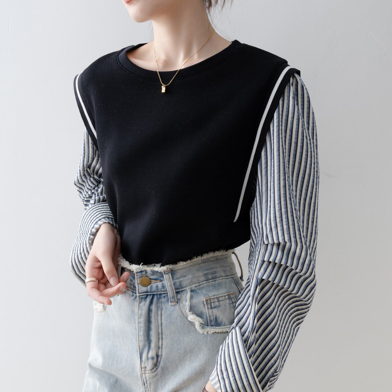 Layered vest striped blouse LA2501187