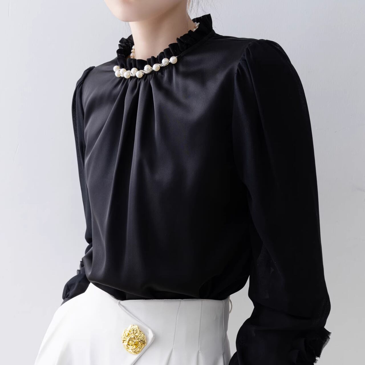 優雅でフェミニンなデザインが魅力の一着です。ハイネックとフリル襟が顔周りを華やかに彩り、どんなシーンでも女性らしい印象を与えます。また、ギャザーのディテールがラインを美しく見せ、着る人の個性を引き出します。カジュアルな日常から特別な日まで幅広くご着用いただけます。