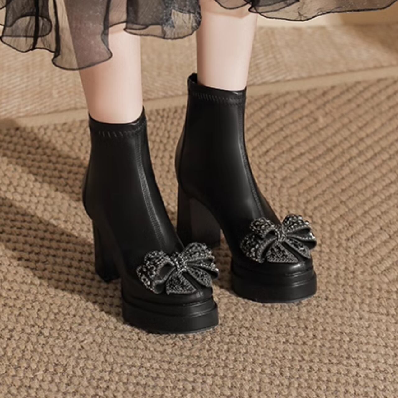 優雅さと個性を楽しむブーツは、日常使いから特別なシーンまで幅広く活躍します。ビジューのアクセントが足元を華やかに彩り、どんなスタイルにも合わせやすいデザインが魅力です。