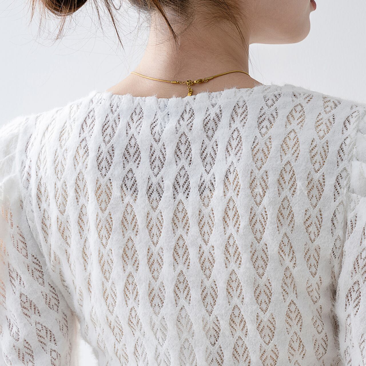 洗練されたデザインが魅力のブラウスです。軽やかでエレガントな印象を与え、特別な日からカジュアルなシーンまで幅広く対応します。レースのディテールが女性らしさを引き立て、コーディネートの主役として活躍すること間違いなしです。