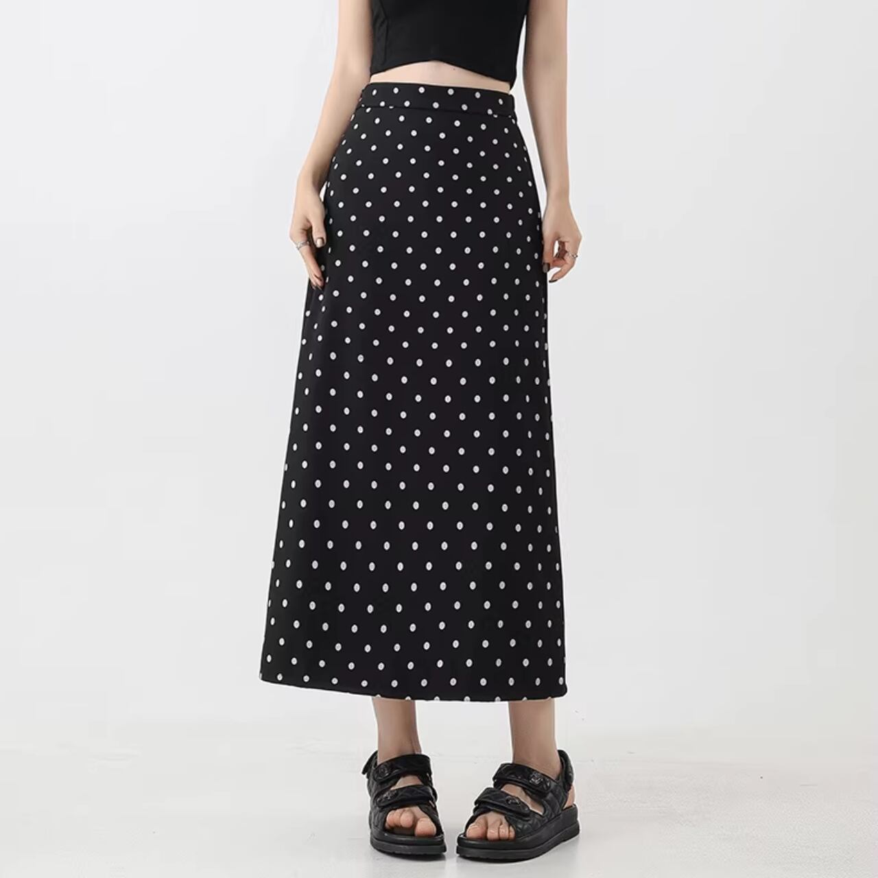 dot print long skirt LA250217