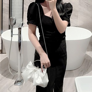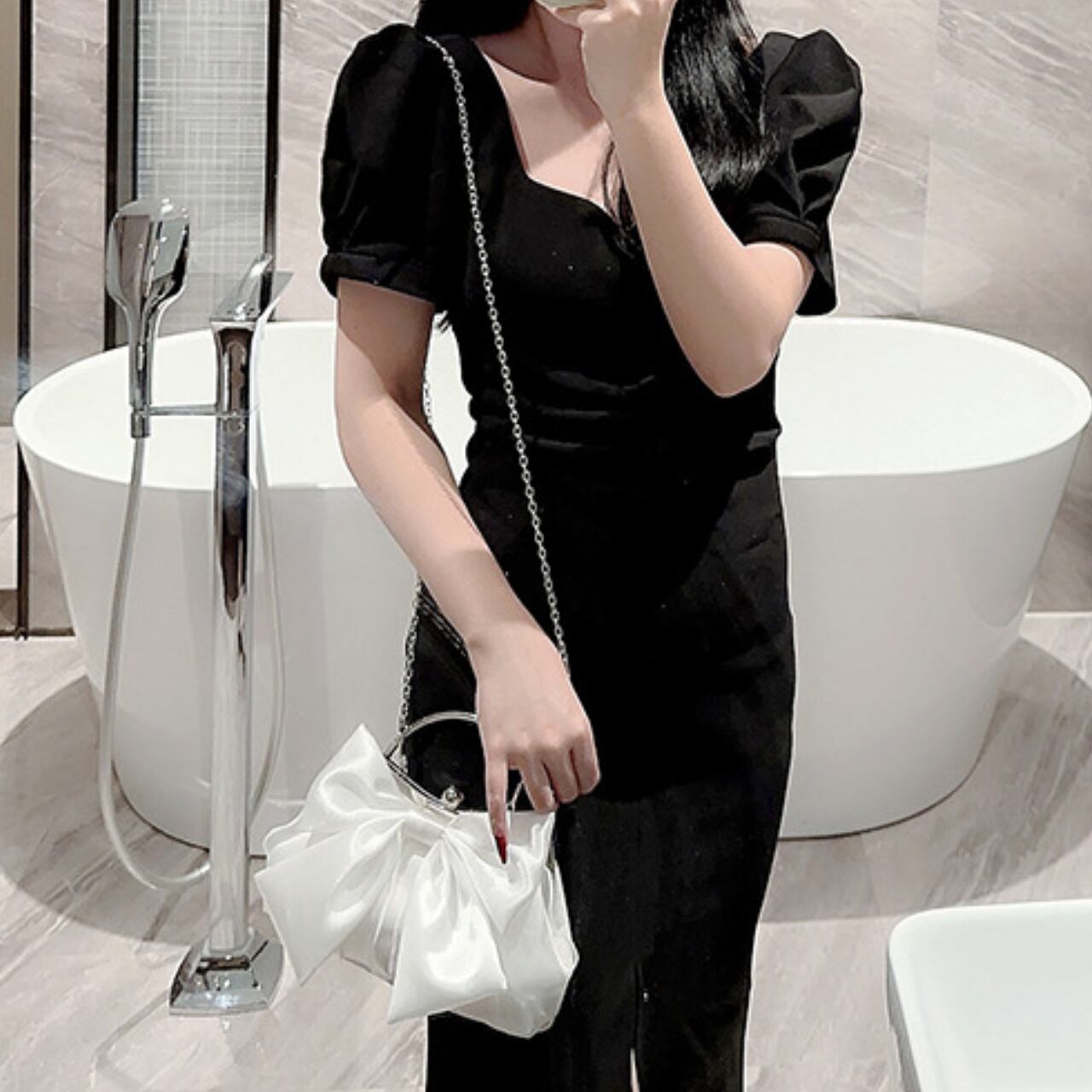 カジュアルな日常から特別な場面まで幅広く活躍するスタイリッシュなアイテムです。目を引くビッグリボンとチェーンが、あなたのコーディネートを一層華やかに引き立てます。