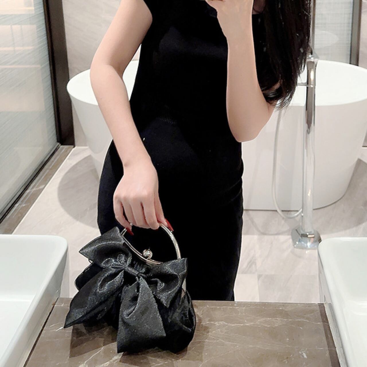 カジュアルな日常から特別な場面まで幅広く活躍するスタイリッシュなアイテムです。目を引くビッグリボンとチェーンが、あなたのコーディネートを一層華やかに引き立てます。